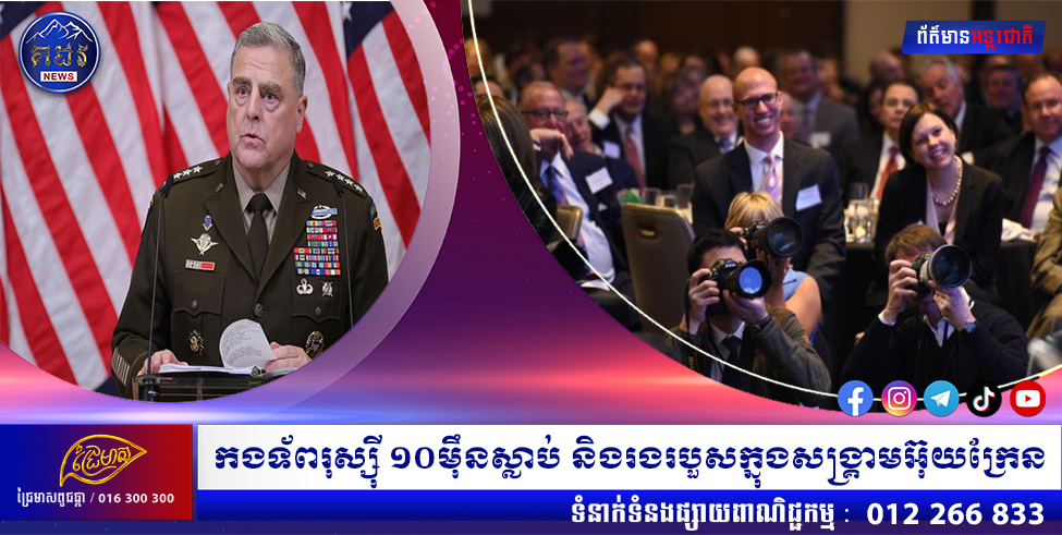 (វ៉ាស៊ីនតោន)៖ ឧត្ដមសេនីយ៍កំពូលរបស់សហរដ្ឋអាមេរិក លោក Mark Milley នៅថ្ងៃពុធសប្ដាហ៍នេះបានវាយតម្លៃថាកងទ័ពរុស្ស៊ីប្រហែលជា ១០០,០០០នាក់ បានស្លាប់ និងរងរបួសនៅក្នុងសង្រ្គាម ខណៈភាគីអ៊ុយក្រែនក៏មានតួលេខកងទ័ពស្លាប់ និងរងរបួសប្រហាក់ប្រហែលគ្នានេះដែរ។ នេះបើតាមការចេញផ្សាយ ដោយទីភ្នាក់ងារសារព័ត៌មាន AFP នៅថ្ងៃព្រហស្បតិ៍ ទី១០ ខែវិច្ឆិកា ឆ្នាំ២០២២។