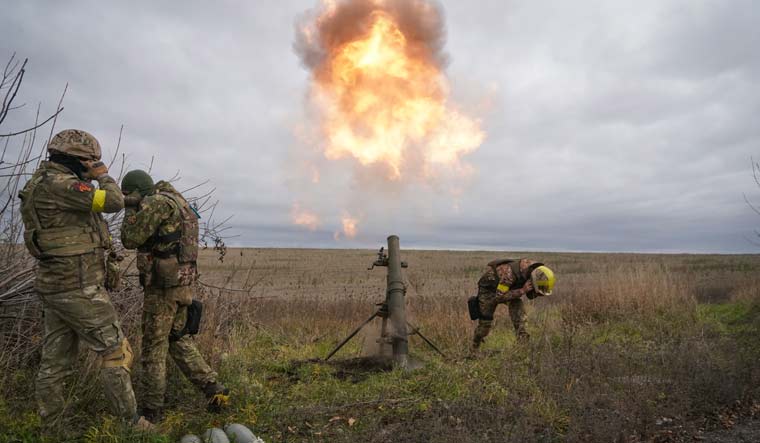 Ukrainian National Guard soldiers fire at Russian positions with a mortar near Kharkiv | AP