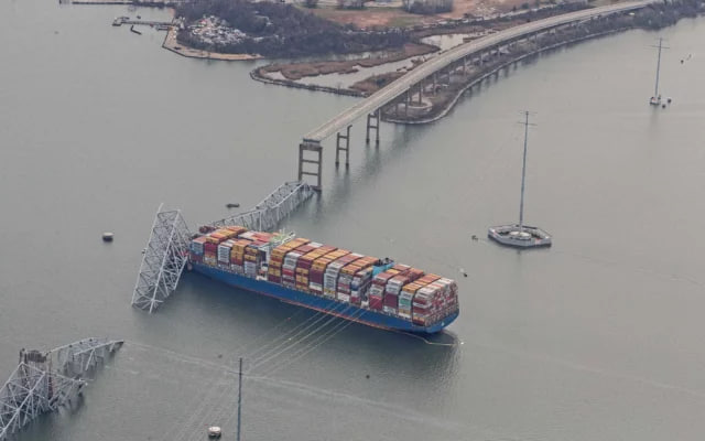 កប៉ាល់ដឹកទំនិញប្រវែង 984 ហ្វីតបានបុកទៅនឹងសសរស្ពានFrancis Scott Key នៃទីក្រុង Baltimore