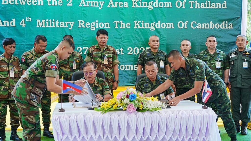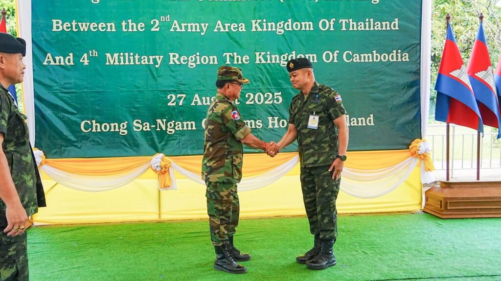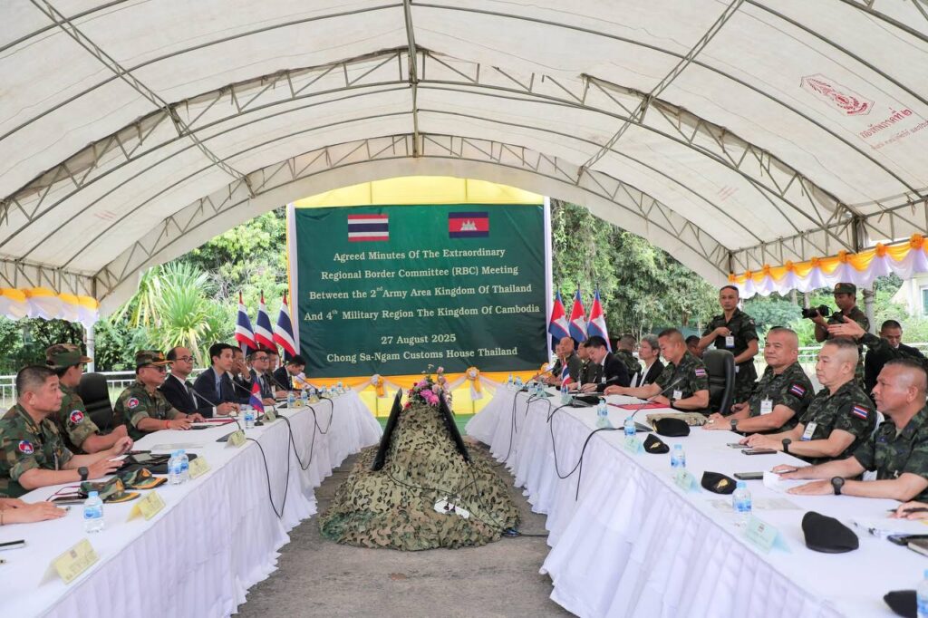 កិច្ចប្រជុំRBC៖ កម្ពុជា-ថៃ ឯកភាពគ្នាក្នុងការរក្សាទំនាក់ទំនងរវាងបណ្តាយោធភូមិភាគ និងតំបន់យោធា ដោយខិតខំដោះស្រាយរាល់បញ្ហាដោយសន្តិវិធី និងបញ្ចៀសការប៉ះទង្គិចគ្នា។ កិច្ចប្រជុំវិសាមញ្ញរបស់គណៈកម្មាធិការព្រំដែនថ្នាក់យោធភូមិភាគកម្ពុជា-ថៃ (RBC) រវាងយោធភូមិភាគទី៤របស់កម្ពុជា និងកងទ័ពភូមិភាគទី២របស់ថៃ នៅថ្ងៃទី២៧ ខែសីហានេះ បានបញ្ចប់ដោយជោគជ័យ ក្រោយប្រជុំជិត១ម៉ោង។