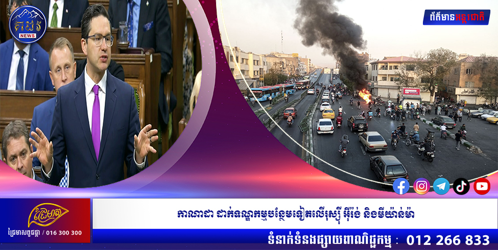 (កាណាដា)៖ ប្រទេសកាណាដានៅថ្ងៃសុក្រនេះ បានសម្រេចដាក់ទណ្ឌកម្មថ្មីលើរុស្ស៊ី អ៊ីរ៉ង់ និងមីយ៉ាន់ម៉ា ដោយលើកឡើងពីការរំលោភសិទ្ធិមនុស្ស ដោយរដ្ឋាភិបាលរបស់ពួកគេ។ នេះបើយោងតាមការចេញផ្សាយដោយ ទីភ្នាក់ងារសារព័ត៌មាន AFP នៅថ្ងៃសុក្រ ទី០៩ ខែធ្នូ ឆ្នាំ២០២២។