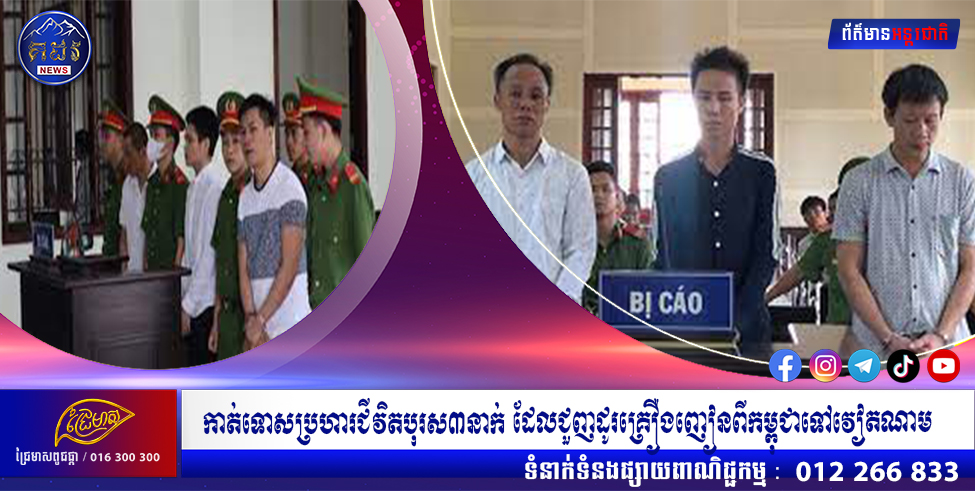 កាត់ទោសប្រហារជីវិតបុរស៣នាក់ ដែលជួញដូរគ្រឿងញៀនពីកម្ពុជាទៅវៀតណាម