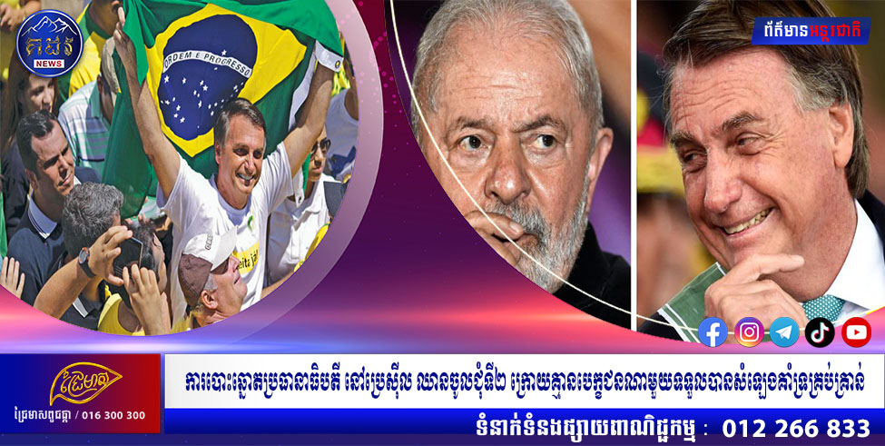 (សៅប៉ូឡូ)៖ ការបោះឆ្នោតនៅក្នុងប្រទេសប្រេស៊ីល នឹងត្រូវឈានចូលដល់ជុំទី២ ខណៈមេដឹកនាំឆ្វេងនិយម លោក លូអ៊ីស អ៊ីណាស្យូ លូឡា ដាស៊ីលវ៉ា (Luiz Inácio Lula da Silva) នឹងត្រូវប្រកួតប្រជែងជាមួយលោក ហ្សាអៀ ប៊ុលសូណារ៉ូ (Jair Bolsonaro) ដែលកំពុងកាន់តំណែងជាប្រធានាធិបតី ប្រេស៊ីលសព្វថ្ងៃ។ នេះបើយោងតាមការចុះផ្សាយដោយទីភ្នាក់ងារសារព័ត៌មាន AFP ថ្ងៃចន្ទ ទី៣ ខែតុលា ឆ្នាំ២០២២។