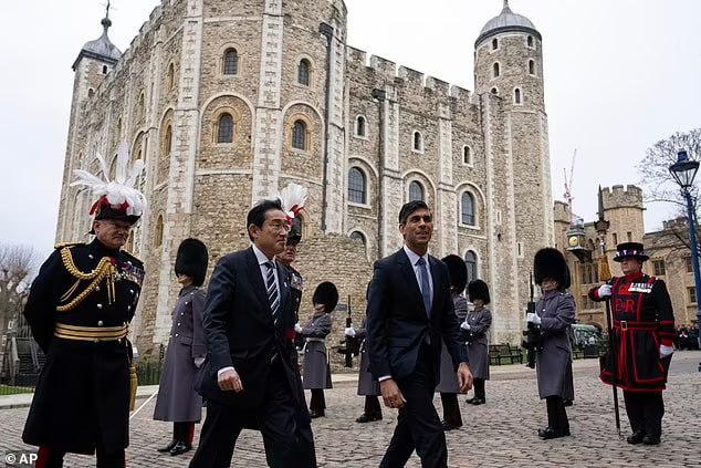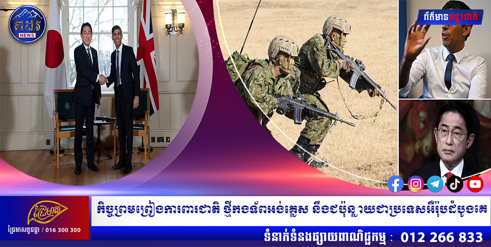 នាយករដ្ឋមន្ត្រីអង់គ្លេសលោក Rishi Sunak បានចុះហត្ថលេខាលើកិច្ចព្រមព្រៀងផ្ដល់ការចេញចូលឲ្យគ្នាទៅវិញទៅមក (RAA) ជាមួយនាយករដ្ឋមន្ត្រីជប៉ុនលោក Fumio Kishida នៅអគារ Tower of London។