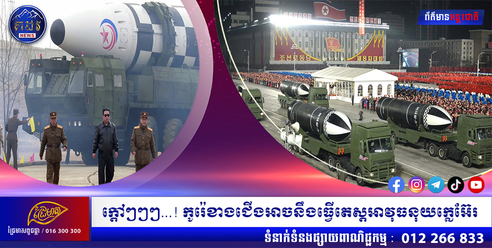 វ៉ាស៊ីនតោន៖ សហរដ្ឋអាមេរិកបានព្រមានក្នុងថ្ងៃចន្ទសប្តាហ៍នេះថា កូរ៉េខាងជើងទំនងជានឹងធ្វើការសាកល្បងមីស៊ីលផ្ទុកក្បាលគ្រាប់នុយក្លេអ៊ែរ បន្ទាប់ពីបានឃើញការកើនឡើងភាពតានតឹងក្នុងប៉ុន្មានសប្តាហ៍ថ្មីៗនេះ ក៏ដូចជាការបញ្ចប់ទីតាំងសាកល្បង Punggye Ri របស់ខ្លួន។