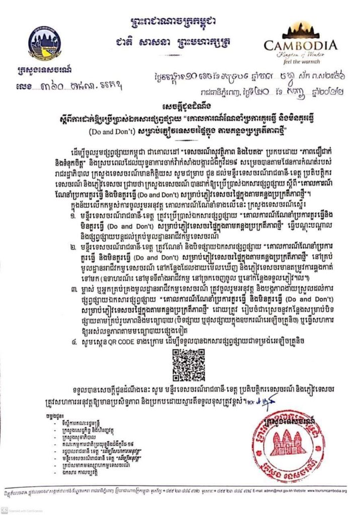 ក្នុងនោះផងដែរប្រតិប្រតិបត្តិករទេសចរណ៍អាចទាញយក QR Code ក្នុងសេចក្តីជូនដំណឹងនេះដើម្បីទទួលបានឯកសារផ្សព្វផ្សាយជាទម្រង់អេឡិចត្រូនិច។