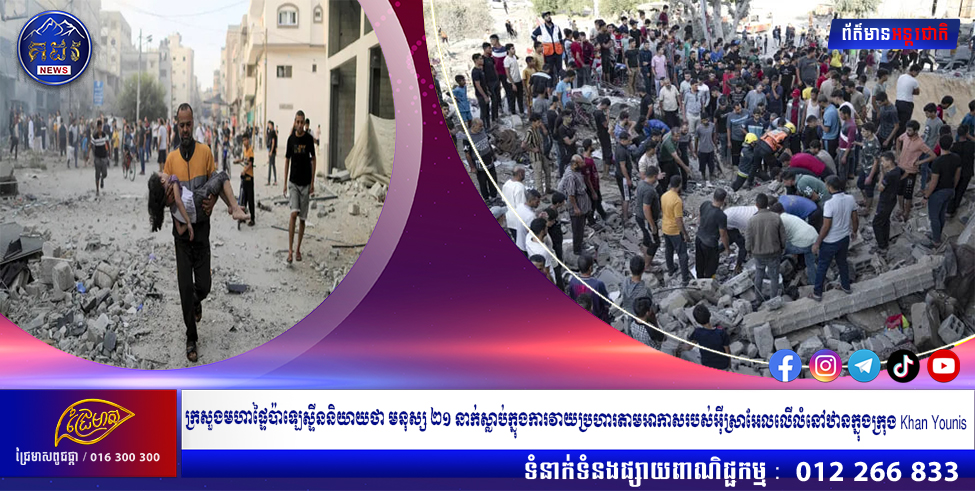 ក្រសួងមហាផ្ទៃប៉ាឡេស្ទីននិយាយថា មនុស្ស ២១ នាក់ស្លាប់ក្នុងការវាយប្រហារតាមអាកាសរបស់អ៊ីស្រាអែលលើលំនៅឋានក្នុងក្រុង Khan Younis