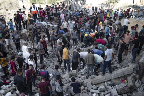 Khan Younis ស្ថិតនៅភាគខាងត្បូងតំបន់ Gaza ដែលកាន់តែមានហ្វូងមនុស្សកើនឡើងជាមួយនឹងជនស៊ីវិលដែលផ្លាស់ទីលំនៅ បន្ទាប់ពីអ៊ីស្រាអែលបានប្រាប់ប្រជាជនឱ្យជម្លៀសចេញពីតំបន់ Gaza ភាគខាងជើង។