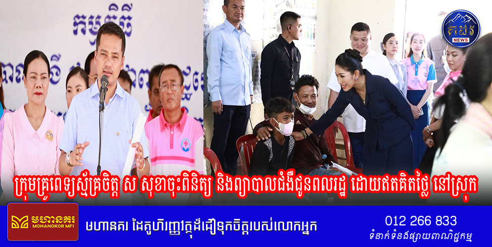 ក្រុមគ្រូពេទ្យស្ម័គ្រចិត្ត ស សុខាចុះពិនិត្យ និងព្យាបាលជំងឺជូនពលរដ្ឋ ដោយឥតគិតថ្លៃ នៅស្រុក