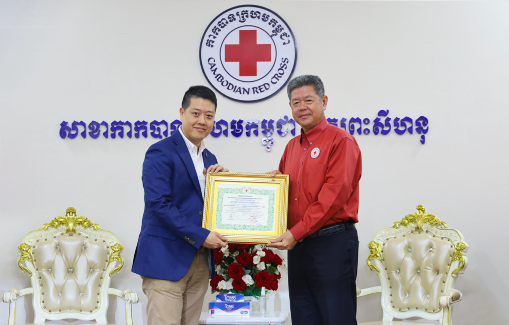 ឯកឧត្តម គួច ចំរើន អភិបាល ខេត្តព្រះសីហនុ បានទទួលយកអំណោយរបស់ក្រុមហ៊ុន ខានូភី សែន ឌីវេឡុបមិន នៅសាខាកាកបាទក្រហមកម្ពុជាខេត្តព្រះសីហនុ និងបានកោតសរសើរចំពោះអំពើល្អរបស់ក្រុមហ៊ុន។
