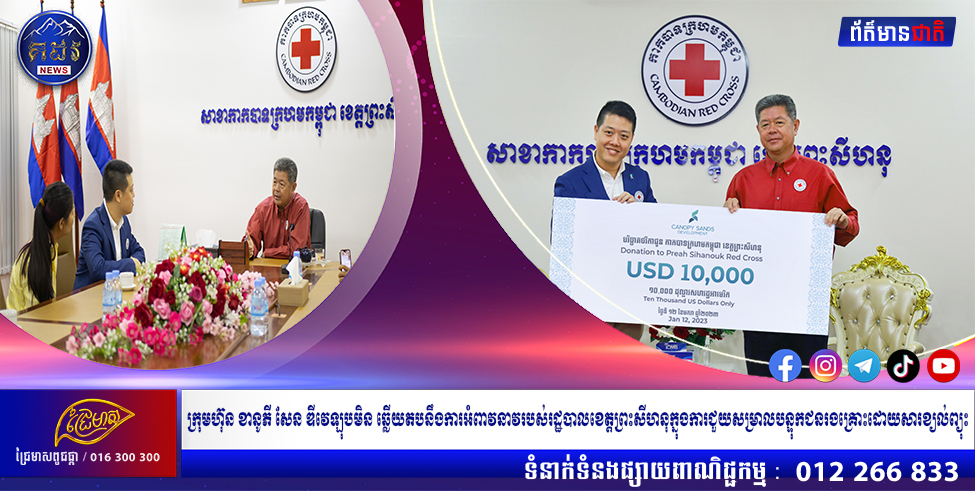[ ក្រុងព្រះសីហនុ ថ្ងៃទី ១៣ ខែ មករា ឆ្នាំ ២០២៣] ក្រុមហ៊ុនអភិវឌ្ឍន៍អចលនទ្រព្យ ខានូភី សែន ឌីវេឡុបមិន ដែលមានមូលដ្ឋាននៅប្រទេសកម្ពុជា បានបរិច្ចាគថវិកាចំនួន ១០,០០០ ដុល្លារ និងសម្ភារៈដំបូល ២,០០០ សម្រាប់ផ្ទះយ៉ាងតិច ៣០ ខ្នង។ នេះដើម្បីឆ្លើយតបទៅនឹងការអំពាវនាវរបស់អាជ្ញាធរខេត្តព្រះសីហនុ បន្ទាប់ពី ខ្យល់ព្យុះកាលពីពេលថ្មីៗនេះបានធ្វើឱ្យខូចខាតផ្លូវឆ្លងកាត់ក្រុងព្រះសីហនុយ៉ាងដំណំ និងធ្វើឱ្យមនុស្សរាប់ពាន់នាក់បាត់បង់ផ្ទះសម្បែង។