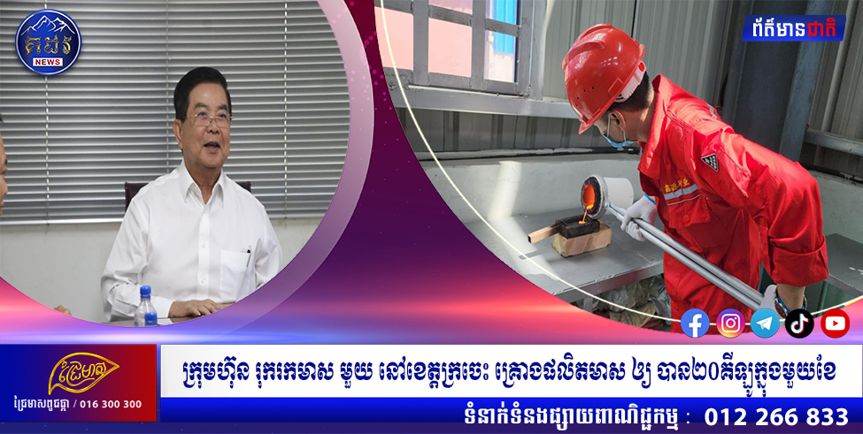 ក្រុមហ៊ុន រុករកមាស Xing Yuan Kanng Yeak Co., Ltd ដែល ទទួលបានអាជ្ញាប័ណ្ណពី ក្រសួងរ៉ែ និងថាមពល គ្រោងផលិតមាស ឲ្យ បាន២០គីឡូនៅក្នុងមួយខែ ដែលគិត ដល់ខែធ្នូឆ្នាំ២០២២ខាងមុខនេះ គ្រោងផលិតមាស ឲ្យបាន៦០គីឡូ។ នេះ បើ យោងតាមប្រសាសន៍របស់លោក ស៊ុយ សែម រដ្ឋមន្ត្រីក្រសួងរ៉ែ និង ថាមពល នៅក្នុងឱកាសដែល លោកបាន អញ្ជើញ ជា អធិបតី ក្នុង ដំណើរការ កត់ត្រា ទិន្នន័យ ស្ល រ៉ែ មាស លើក ទី ១ របស់ ក្រុមហ៊ុន Xing Yuan Kanng Yeak Co., Ltd ដោយមាន ការចូលរួម ពី លោក វ៉ា ថន អភិបាល នៃ គណៈ អភិបាលខេត្ត ក្រចេះ ថ្នាក់ដឹកនាំ ក្រសួង និង មន្ត្រី ជំនាញ ពាក់ព័ន្ធ ជាច្រើនរូប ។