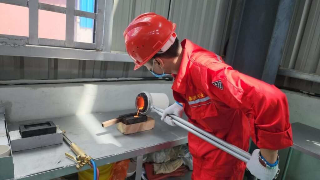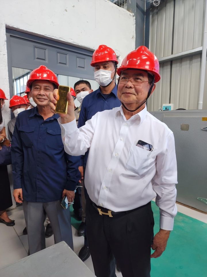 សូម ជម្រាបជូន ថា នៅ ព្រឹក ថ្ងៃទី ១០ ខែតុលា ឆ្នាំ ២០២២ នេះ ក្រុមហ៊ុន Xing Yuan Kanng Yeak Co., Ltd បាន បើក ដំណើរការ កត់ត្រា ទិន្នន័យ ស្ល រ៉ែ មាស លើក ទី ១ របស់ខ្លួន ដែល ក្នុង នោះបាន កត់ត្រា ថ្លឹង កំហាប់ រ៉ែ មាស (Gold Concentrates) មាន ទម្ងន់ ៧ ៨៤៩ ក្រាម និង បាន យក កំហាប់ រ៉ែ មាស នោះ ទៅ ស្ល និង ចាក់ចេញ ជា ដុំ មាស (Gold Doré) បាន ចំនួន ០៧ ដុំ មាន ទម្ងន់ សរុប ៨,២១២,២៧ ក្រាម ដែលមាន អត្រា ភាព សុទ្ធ ៩៩.៩% ។