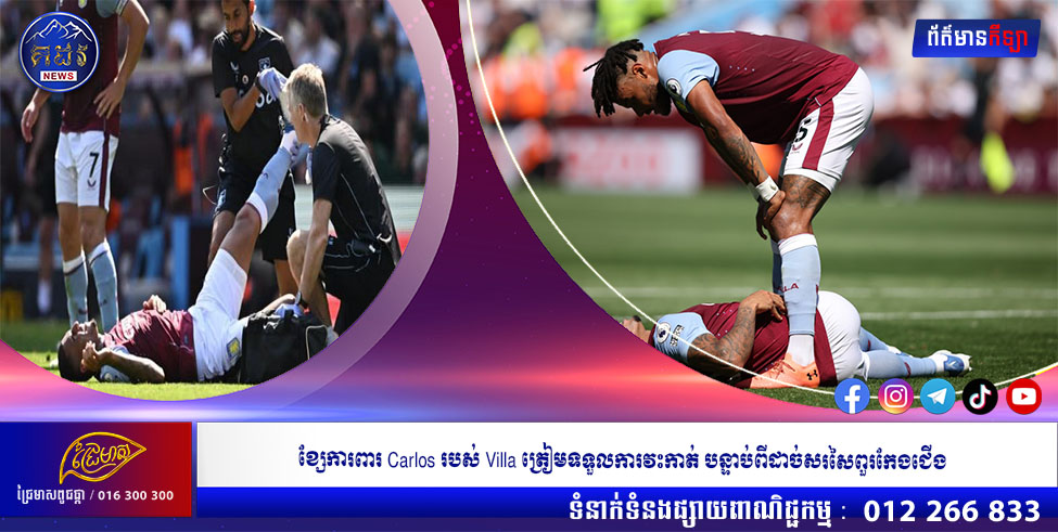 (អាស្តុន)៖ កីឡាករចំណូលថ្មីរបស់ក្លិប Aston Villa ខ្សែការពារ Diego Carlos ត្រូវបន្តអវត្តមានថែមទៀត ដោយសារបញ្ហាដាច់សរសៃពួរកែងជើង ដែលនឹងតម្រូវឲ្យរូបលោកត្រូវទទួលការវះកាត់។ នេះបើតាមការបញ្ជាក់ពីក្លិបដែលលេងនៅលីគ Premier League ហើយត្រូវបានចុះផ្សាយដោយសារព័ត៌មាន CNA នាថ្ងៃទី១៦ ខែសីហា ឆ្នាំ២០២២។
