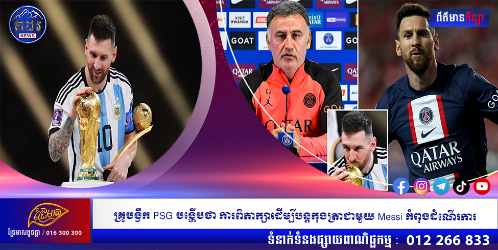 ក្លិបដែលគ្រប់គ្រងដោយប្រទេសកាតា កំពុងពិភាក្សាដើម្បីបន្តកុងត្រា ខណៈគ្រូបង្វឹក Christophe Galtier ទទូចថាអតីតតារាឆ្នើមរបស់ក្លិប Barcelona រូបនេះបានតាំងទីលំនៅនៅរដ្ឋធានីបារាំង។ Galtier បានប្រាប់អ្នកយកព័ត៌មានកាលពីថ្ងៃអង្គារថា “ខ្ញុំដឹងថាមានការពិភាក្សាហើយថាក្លិបបាននិយាយជាមួយ Leo ប៉ុន្តែខ្ញុំមិនដឹងថាពួកគេនៅឯណា”។