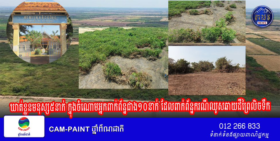 ឃាត់ខ្លួនមនុស្ស៥នាក់ ក្នុងចំណោមអ្នកពាក់ព័ន្ឋជាង១០នាក់ ដែលពាក់ព័ន្ឋករណីឈូសឆាយដីព្រៃលិចទឹកនៅចំណុចបឹងតាទុំ ភូមិកង្កែប ឃុំច្រណូក ស្រុកកំពង់លែង ខេត្តកំពង់ឆ្នាំ