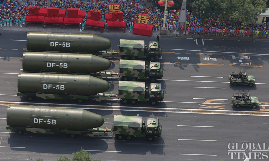 (តូក្យូ)៖ ប្រព័ន្ធផ្សព្វផ្សាយក្នុងស្រុករបស់ជប៉ុន កាលពីថ្ងៃសៅរ៍ បានរាយការណ៍ថា ប្រទេសចិនកំពុងមានគោលដៅ បង្កើនចំនួនក្បាលគ្រាប់នុយក្លេអ៊ែររបស់ខ្លួន ឱ្យដល់៩០០គ្រាប់ នៅត្រឹមឆ្នាំ២០៣៥ ដើម្បីប្រឆាំងទប់ទល់នឹងចំនួនអាវុធនុយក្លេអ៊ែររបស់អាមេរិក។ នេះបើតាមការចេញផ្សាយដោយ ទីភ្នាក់ងារព័ត៌មាន RT នៅថ្ងៃអាទិត្យ ទី១២ ខែកុម្ភៈ ឆ្នាំ២០២៣។