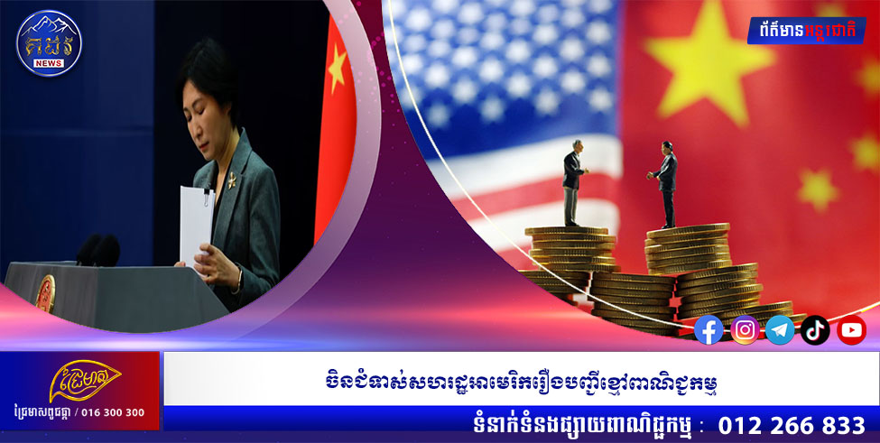 (ហុងកុង)៖ ក្រសួងពាណិជ្ជកម្មចិនបានឱ្យដឹងនៅពីថ្ងៃសុក្រថា ប្រទេសចិនប្រឆាំងនឹងសហរដ្ឋអាមេរិកដែលបន្ថែមក្រុមហ៊ុនចិនមួយចំនួនទៅក្នុងបញ្ជីខ្មៅពាណិជ្ជកម្មរបស់ខ្លួន។ នេះបើយោងតាមទីភ្នាក់ងារព័ត៌មានរ៉យទ័រ។