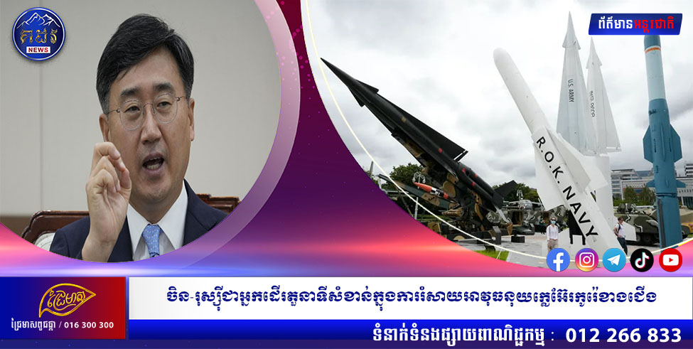 សេអ៊ូល៖ មន្ត្រីកូរ៉េខាងត្បូងកំពូលមួយរូបបាននិយាយនៅថ្ងៃព្រហស្បតិ៍សប្តាហ៍នេះថា ភាពស្ទាក់ស្ទើររបស់ចិន និងរុស្ស៊ីក្នុងការពង្រឹងទណ្ឌកម្មរបស់អង្គការសហប្រជាជាតិលើកូរ៉េខាងជើង គឺជា “បញ្ហាប្រឈមដ៏ធំបំផុត” ដែលប្រឈមមុខនឹងកិច្ចខិតខំប្រឹងប្រែង ដើម្បីលុបបំបាត់ឃ្លាំងអាវុធនុយក្លេអ៊ែររបស់កូរ៉េខាងជើង។