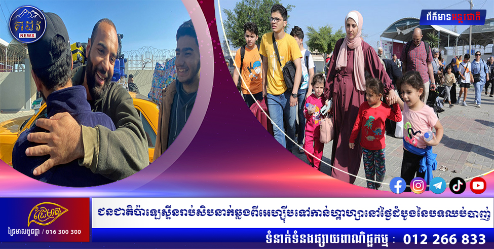 ជនជាតិប៉ាឡេស្ទីនរាប់សិបនាក់ឆ្លងពីអេហ្ស៊ីបទៅកាន់ហ្គាហ្សានៅថ្ងៃដំបូងនៃបទឈប់បាញ់