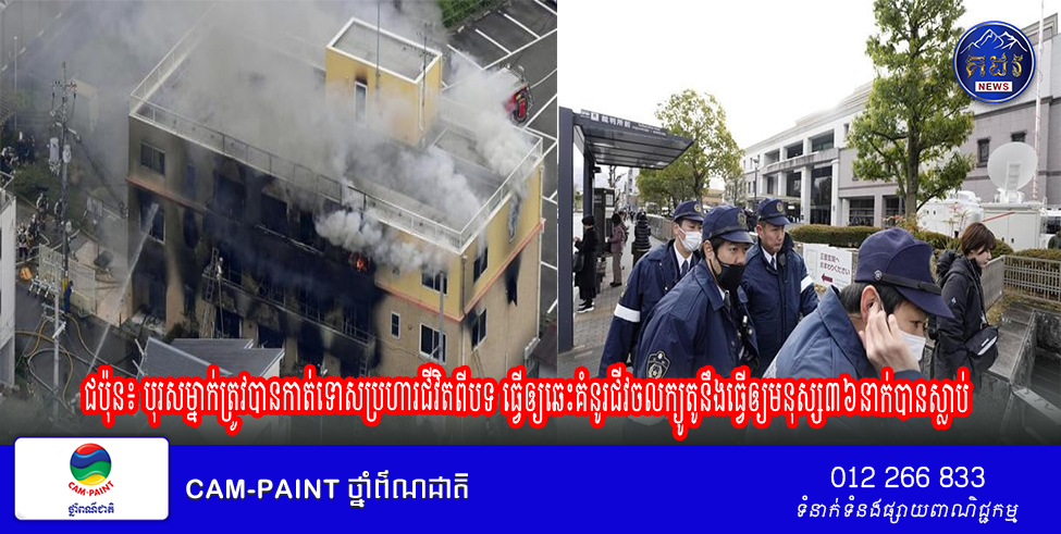 ជប៉ុន៖ បុរស​ម្នាក់​ត្រូវ​បាន​កាត់​ទោស​ប្រហារ​ជីវិត​ពី​បទ ធ្វើឲ្យ​ឆេះ​គំនូរជីវចល​ក្យូតូនឹងធ្វើឲ្យមនុស្ស៣៦នាក់បានស្លាប់