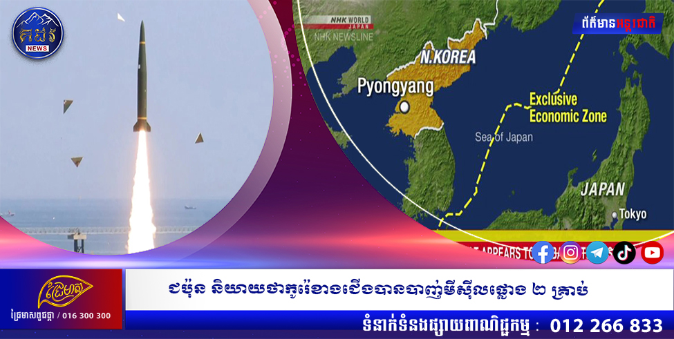 ជប៉ុន និយាយ ថាកូរ៉េខាងជើងបានបាញ់មីស៊ីលផ្លោង២ គ្រាប់