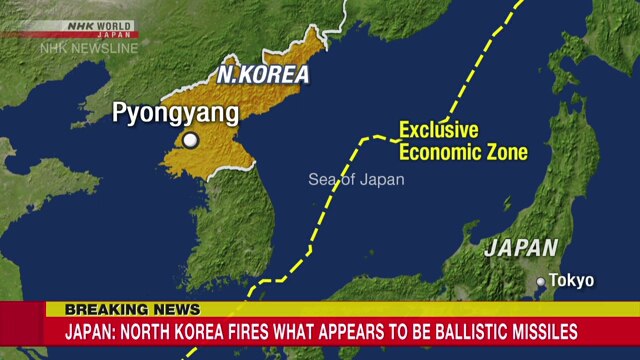 ក្រសួងការពារជាតិជប៉ុននិយាយថា កូរ៉េខាងជើងបានបាញ់មីស៊ីលផ្លោងចំនួនពីរគ្រាប់។ មន្ត្រីរដ្ឋាភិបាលបាននិយាយថា កាំជ្រួចទាំងពីរទំនងជាបានចុះចតនៅខាងក្រៅតំបន់សេដ្ឋកិច្ចផ្តាច់មុខរបស់ប្រទេសជប៉ុន។ មកទល់ពេលនេះ មិនទាន់មានរបាយការណ៍អំពីការខូចខាតដល់នាវា និងយន្តហោះរបស់ជប៉ុននៅឡើយទេ។
