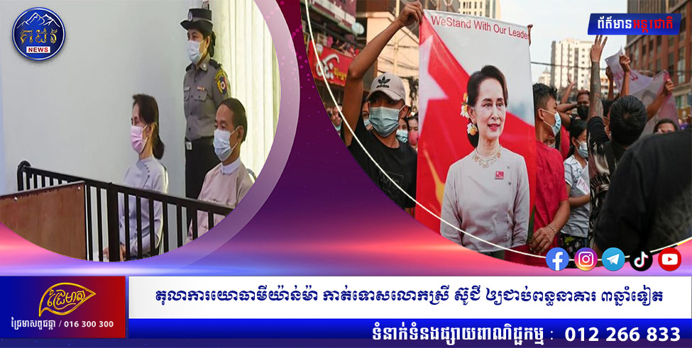 តុលាការដែលគ្រប់គ្រងដោយយោធាក្នុងប្រទេសមីយ៉ាន់ម៉ា បានកាត់ទោសលោកស្រី អ៊ុងសាន ស៊ូជី ឲ្យជាប់ពន្ធនាគាររយៈពេល៣ឆ្នាំបន្ថែមទៀត លើការចោទប្រកាន់ពីបទក្លែងបន្លំសន្លឹកឆ្នោត។