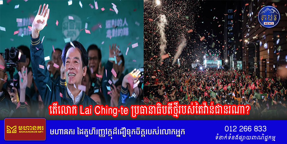 Lai Ching-te ដែលជាអតីតវេជ្ជបណ្ឌិតមកពីគ្រួសារជីករ៉ែក្រីក្រមួយត្រូវបានជំរុញឱ្យចូលក្នុងនយោបាយដោយវិបត្តិយោធានៅច្រកសមុទ្រតៃវ៉ាន់កាលពី 27 ឆ្នាំមុន។ ឥឡូវនេះ ជើងចាស់នយោបាយដែលនិយាយទន់ជ្រាយ មានភារកិច្ចទប់ស្កាត់ការកើតឡើងមួយទៀត ក្នុងនាមជាមេដឹកនាំទើបជាប់ឆ្នោតថ្មីនៃកោះដែលគ្រប់គ្រងដោយខ្លួនឯង ដែលបក្សកុម្មុយនិស្តចិនបានប្តេជ្ញាថានឹងទទួលយកមួយថ្ងៃ។ កាលពីថ្ងៃសៅរ៍ លោកLai អាយុ ៦៤ ឆ្នាំជាអនុប្រធានបច្ចុប្បន្នមកពីគណបក្ស វឌ្ឍនភាព ប្រជាធិបតេយ្យ (DPP) ដែលកំពុងកាន់ អំណាចបានឈ្នះការបោះឆ្នោត ដែលត្រូវបានគេ មើលយ៉ាងទូលំទូលាយដើម្បីក្លាយជាប្រធានាធិបតីបន្ទាប់របស់តៃវ៉ាន់។