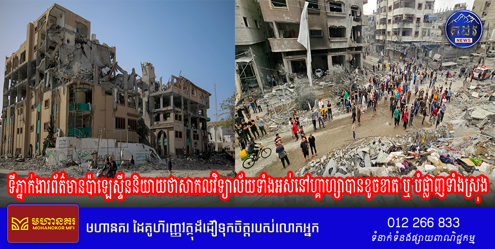 ទីភ្នាក់ងារព័ត៌មានប៉ាឡេស្ទីននិយាយថា សាកលវិទ្យាល័យទាំងអស់នៅហ្គាហ្សាបានខូចខាតឬបំផ្លាញទាំងស្រុង