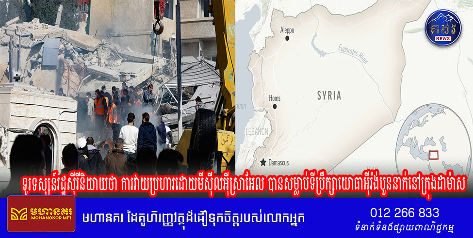 ទូរទស្សន៍រដ្ឋស៊ីរីនិយាយថា ការវាយប្រហារដោយមីស៊ីលអ៊ីស្រាអែល បានសម្លាប់ទីប្រឹក្សាយោធាអ៊ីរ៉ង់បួននាក់នៅក្រុងដាម៉ាស