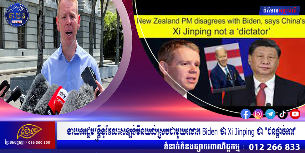 ស៊ីដនី៖ នាយករដ្ឋមន្ត្រីនូវែលហ្សេឡង់ លោក Chris Hipkins នៅមុនដំណើរទស្សនកិច្ចផ្លូវការរបស់លោកទៅកាន់ប្រទេសចិននៅចុងខែនេះ បាននិយាយកាលពីថ្ងៃព្រហស្បតិ៍ថា លោកមិនយល់ស្របនឹងការលើកឡើងរបស់ប្រធានាធិបតីអាមេរិក Joe Biden ដែលថាមេដឹកនាំចិន Xi Jinping គឺជាជនផ្តាច់ការនោះទេ។