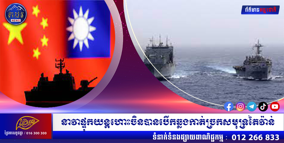 តៃប៉ិៈ ក្រសួងការពារជាតិតៃវ៉ាន់បាននិយាយថា នាវាផ្ទុកយន្តហោះចិនមានឈ្មោះថាកប៉ាល់ Shandong បានធ្វើដំណើរឆ្លងកាត់ច្រកសមុទ្រតៃវ៉ាន់ដ៏រសើបកាលពីថ្ងៃពុធ ចំពេលមានភាពតានតឹងយោធាកាន់តែខ្លាំងឡើងលើកោះតៃវ៉ាន់។