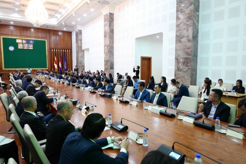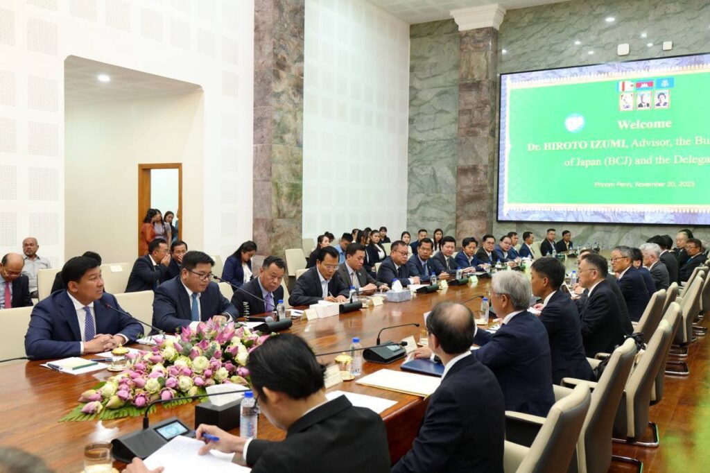ភ្នំពេញ៖ ឧបនាយករដ្ឋមន្រ្តី សាយ សំអាល់ ថ្លែងអំណរគុណប្រទេសជប៉ុន ក្នុងជំនួបជាមួយគណៈប្រតិភូក្រុមហ៊ុនឯកជនជប៉ុន ដឹកនាំដោយលោកបណ្ឌិត Hiroto IZUMI អតីតទីប្រឹក្សានាយករដ្ឋមន្ត្រីជប៉ុន និងជាអ្នករៀបចំគោលនយោបាយលើវិស័យលំនៅឋានជប៉ុន កាលពីថ្ងៃទី២០ ខែវិច្ឆិកា ឆ្នាំ២០២៣។