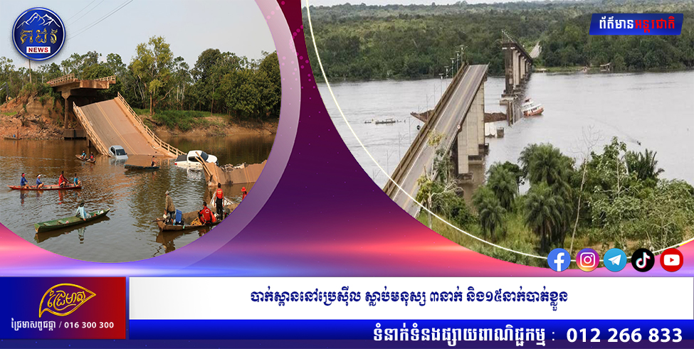 ក្រុមអ្នកជួយសង្រ្គោះកំពុងតាមស្វែងរកមនុស្ស១៥នាក់ ដែលបានបាត់ខ្លួន ក្រោយស្ពានមួយតភ្ជាប់ទៅផ្លូវហាយវេ BR-319 នៅក្នុងទីក្រុងការេរ៉ូ (Careiro) ស្ថិតនៅចម្ងាយជាង ១០០គីឡូម៉ែត្រពីរដ្ឋធានីម៉ាណូស (Manaus) នៃរដ្ឋអាម៉ាហ្សូណាស់ បានបាក់រលំ។