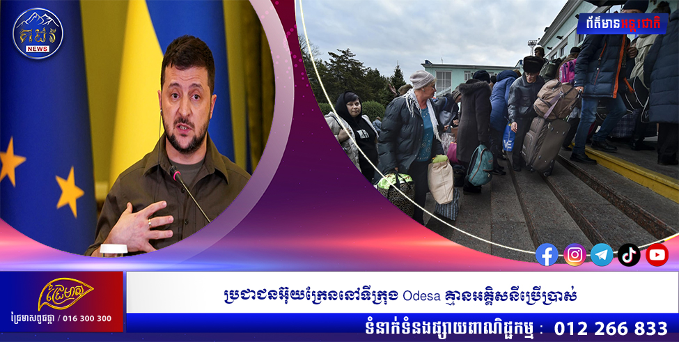 (កៀវ)៖ ប្រធានាធិបតីអ៊ុយក្រែន លោក វ៉ូឡូឌីមៀ ហ្សេលេនស្គី បានឱ្យដឹងកាលពីថ្ងៃសៅរ៍ចុងសប្ដាហ៍នេះថាប្រជាជនជាង ១.៥លាននាក់ នៅក្នុងទីក្រុងកំពង់ផែ អូដេសា (Odesa) និងតំបន់នៅជុំវិញ នៃភាគខាងត្បូងនៃប្រទេស កំពុងគ្មានអគ្គិសនីប្រើប្រាស់ ហើយលោកផ្ទាល់ក៏បានព្រមានដែរថា ស្ថានភាពកាន់តែ អាក្រក់ទៅៗ។ នេះបើតាមការចេញផ្សាយដោយទីភ្នាក់ងារសារព័ត៌មាន AFP នៅថ្ងៃអាទិត្យ ទី១១ ខែធ្នូ ឆ្នាំ២០២២។