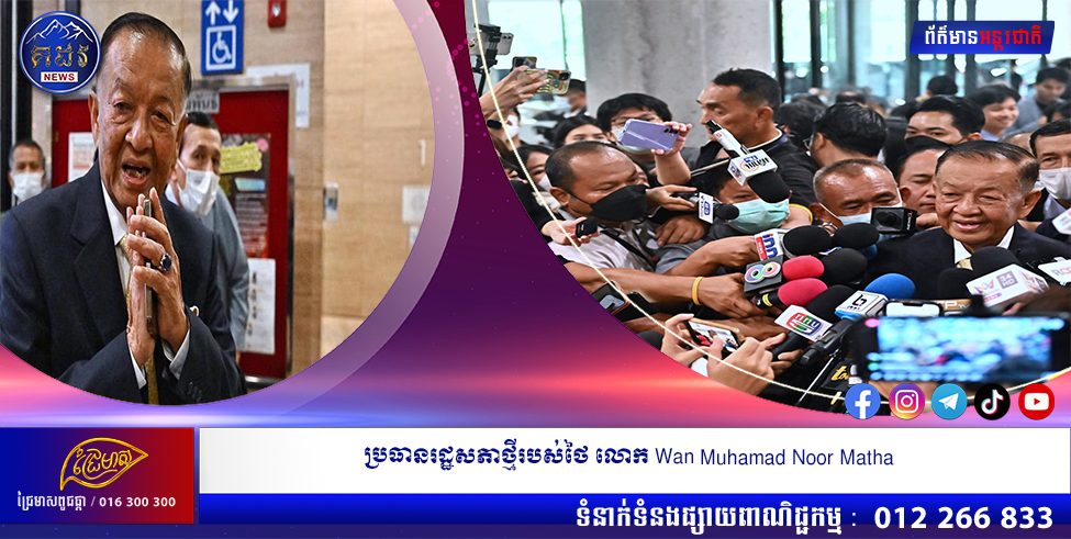 (បាងកក)៖ លោក វ៉ាន់ មហាំម៉ាត់ នួរ ម៉ាថា (Wan Muhamad Noor Matha) ជាមេដឹកនាំគណបក្ស Prachachat ត្រូវបានតែងតាំងជាប្រធានរដ្ឋសភាថ្មីរបស់ថៃជាផ្លូវការហើយ នៅថ្ងៃអង្គារនេះ ខណៈរូបលោកគឺជាបេក្ខជនតែម្នាក់គត់សម្រាប់តំណែងមួយនេះ។