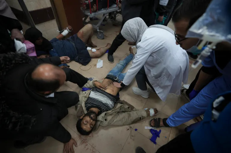 “បុគ្គលិករបស់ WHO បានឃើញឈុតឆាកឈឺចាប់របស់មនុស្សគ្រប់វ័យ ដែលត្រូវបានព្យាបាលនៅលើកម្រាលឥដ្ឋដែលមានឈាម និងនៅក្នុងច្រករបៀងដ៏ច្របូកច្របល់។ កុមារមិនស្គាល់អត្តសញ្ញាណម្នាក់ ដេកស្លាប់មួយផ្នែក គ្របដោយសន្លឹកនៅលើគ្រែ។ សេចក្តីថ្លែងការណ៍បាននិយាយថា អ្នករងរបួសផ្សេងទៀតត្រូវបានក្រាបនៅលើឥដ្ឋ ដោយត្រូវបានបុគ្គលិកសុខាភិបាល និងក្រុមគ្រួសារបានជាន់ពីលើ”។