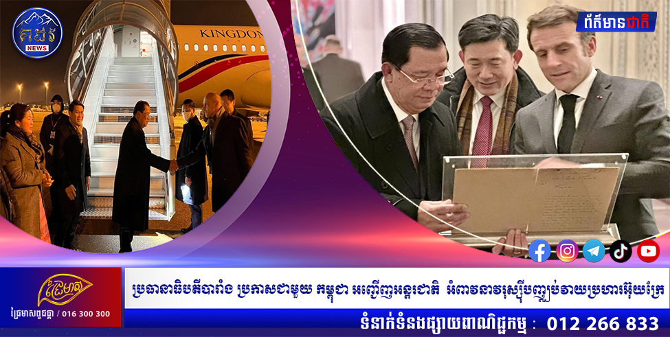 លោក អេម៉ានុយអែល ម៉ាក្រុង (Emmanuel Macron) ប្រធានាធិបតីបារាំង បានរួមគ្នាជាមួយ សម្តេចអគ្គមហាសេនាបតីតេជោ ហ៊ុន សែន នាយករដ្ឋមន្ត្រី នៃព្រះរាជាណាចក្រកម្ពុជា និងបានអញ្ជើញដៃគូអន្តរជាតិ ចូលរួមអំពាវនាវឱ្យរដ្ឋាភិបាលរុស្ស៊ីបញ្ឈប់ការវាយប្រហារលើប្រជាជនស្លូតត្រង់ និងប្រទេសអ៊ុយក្រែនជាបន្ទាន់។