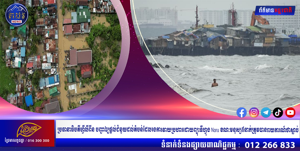 គួរបញ្ជាក់ថា Noru ជាព្យុះទីហ្វុង ទី៣ ប្រចាំនេះ ដែលបានបោកបក់មកលើប្រទេសហ្វីលីពីន ហើយបានថមថយឥទ្ធិពលកាលពីយប់ថ្ងៃអាទិត្យ។ ព្យុះនេះកំពុងធ្វើដំណើរឆ្ពោះទៅសមុទ្រចិនខាងត្បូង និងឆ្ពោះទៅប្រទេសវៀតណាម៕