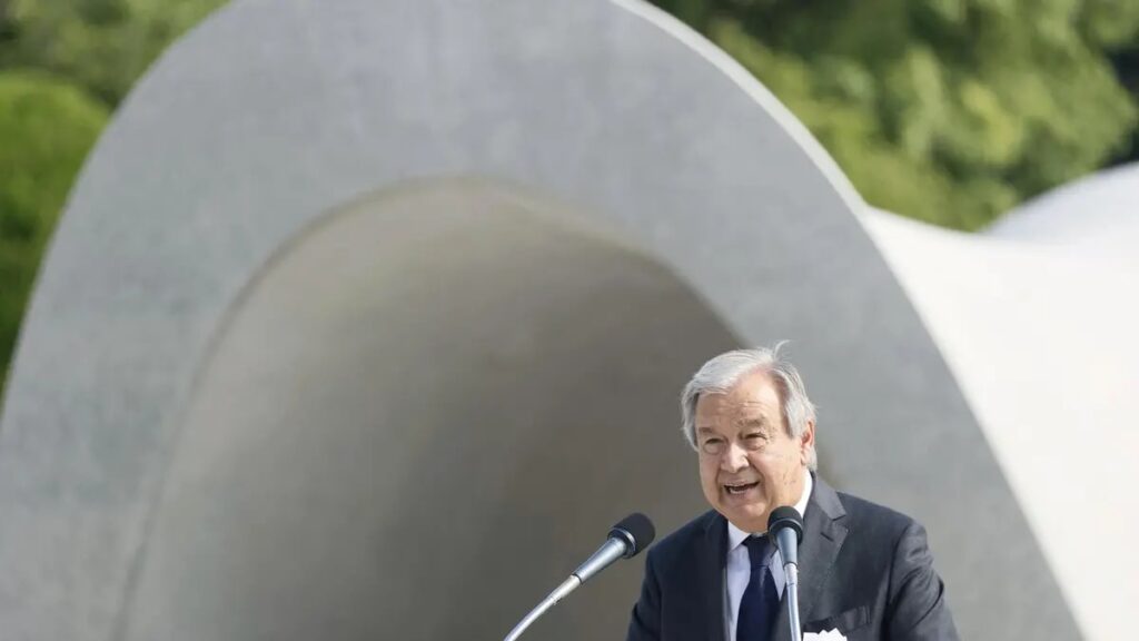 លោក ហ្គូទែររ៉ែស ធ្វើការកត់សម្គាល់បែបនេះ នាឱកាសដែលលោកចូលរួមការប្រារព្ធខួបលើកទី៧៧ នៃការទម្លាក់គ្រាប់នុយក្លេអ៊ែររបស់សហរដ្ឋអាមេរិក លើទីក្រុងហ៊ីរ៉ូស៊ីម៉ា ប្រទេសជប៉ុន។ ថ្លែងនាឱកាសនោះ ប្រមុខ UN រូបនេះក៏បានព្រមានដែរពីហានិភ័យនៃជម្លោះនៅក្នុងប្រទេសអ៊ុយក្រែន មជ្ឈិមបូព៌ា និងតំបន់ ឧបទ្វីបកូរ៉េ ដែលលោកអះអាងថាសុទ្ធតែជាកន្លែងដែលប្រឈមមុខខ្ពស់នឹងគ្រោះមហន្តរាយនុយក្លេអ៊ែរ។ លោក ហ្គូទែររ៉ែស បានគូសបញ្ជាក់បន្ថែមដូច្នេះថា «មនុស្សរាប់ម៉ឺននាក់ត្រូវបានសម្លាប់នៅក្នុងទីក្រុងនេះ (ហ៊ីរ៉ូស៊ីម៉ា) ក្នុងមួយពព្រិចភ្នែក …ដូច្នេះថាតើយើងទាំងអស់គ្នាបានរៀនអ្វីខ្លះពីមេរៀនដែលបានកើតឡើង លើទីក្រុងនេះ»។
