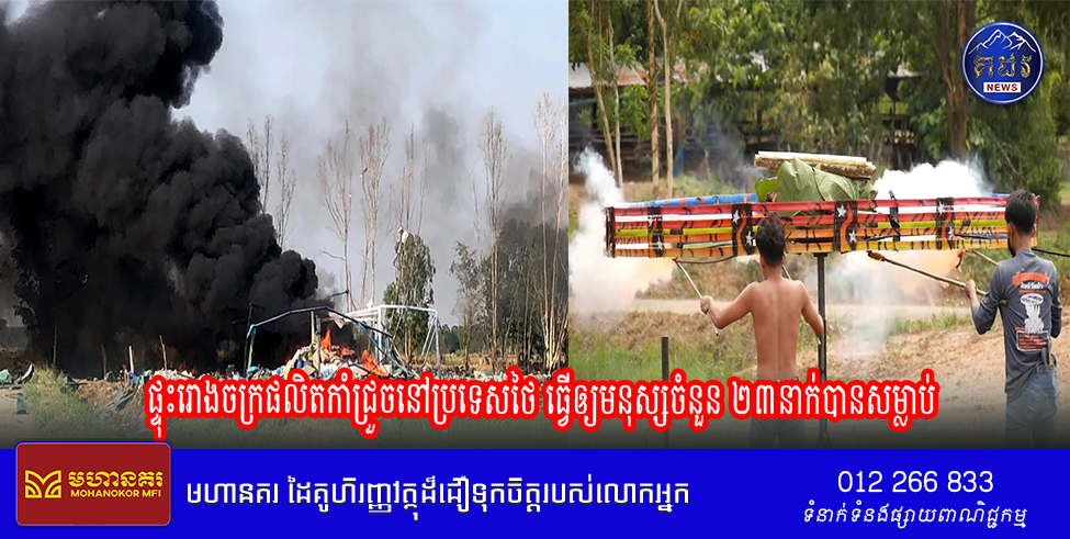 ផ្ទុះរោងចក្រផលិតកាំជ្រួចនៅប្រទេសថៃ ធ្វើឲ្យមនុស្សចំនួន ២៣នាក់បានសម្លាប់