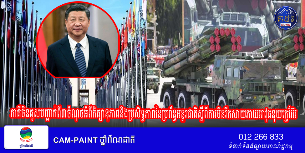 ភាគីចិនបានគូសបញ្ជាក់ពី៣ចំណុចអំពីកិត្យានុភាពនិងប្រសិទ្ធភាពនៃប្រព័ន្ធអន្តរជាតិស្តីពីការមិនរីកសាយភាយអាវុធនុយក្លេអ៊ែរ៖ ទី១ បញ្ឈប់ទង្វើដែលធ្វើឱ្យចុះខ្សោយនូវប្រព័ន្ធអន្តរជាតិស្តីពីការមិនរីកសាយភាយអាវុធនុយក្លេអ៊ែរ។ ទី២ ដោះស្រាយបញ្ហាជាចំណុចក្តៅក្នុងតំបន់តាមវិធីនយោបាយនិងការទូត។ ទី៣ គាំពារនិងពង្រឹងប្រព័ន្ធអន្តរជាតិស្តីពីការមិនរីកសាយភាយអាវុធនុយក្លេអ៊ែរ៕