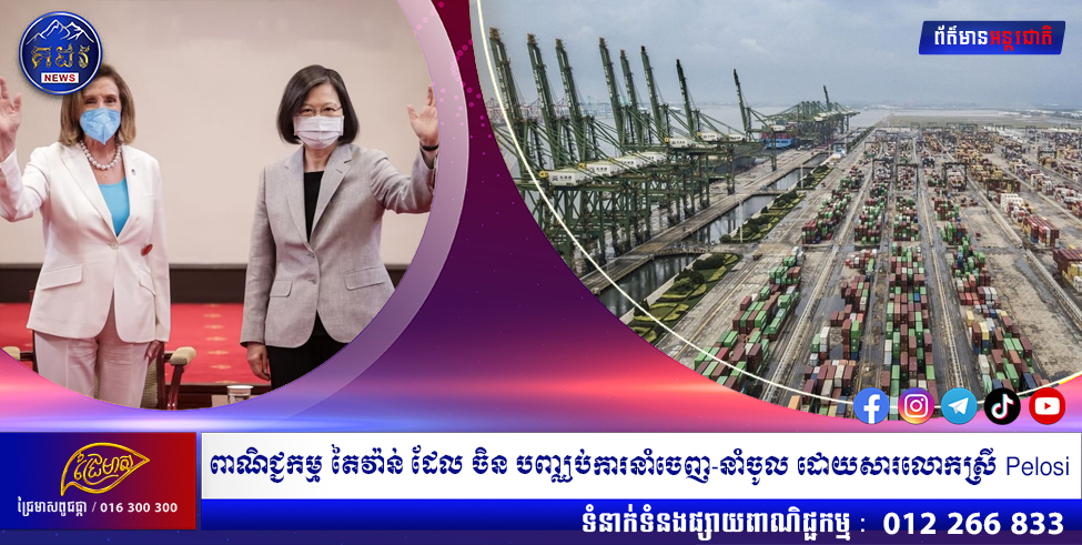 មកដឹងពាណិជ្ជកម្ម តៃវ៉ាន់ ដែល ចិន បញ្ឈប់ការនាំចេញ-នាំចូល ដោយសារលោកស្រី Pelosi