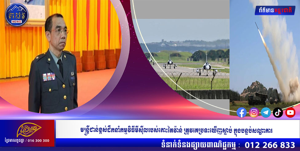 ស្ថាប័នដែលគ្រប់គ្រងដោយយោធា កំពុងធ្វើការបង្កើនសមត្ថភាពផលិតមីស៊ីលប្រចាំឆ្នាំរបស់ខ្លួន លើសទ្វេដង ឲ្យបានដល់ជិត៥០០គ្រាប់នៅឆ្នាំនេះ ខណៈតៃវ៉ាន់បង្កើនកម្លាំងប្រយុទ្ធរបស់ខ្លួន ចំពេលមានការគំរាមកំហែងផ្នែកយោធារបស់ចិនកាន់តែខ្លាំងឡើងៗ៕