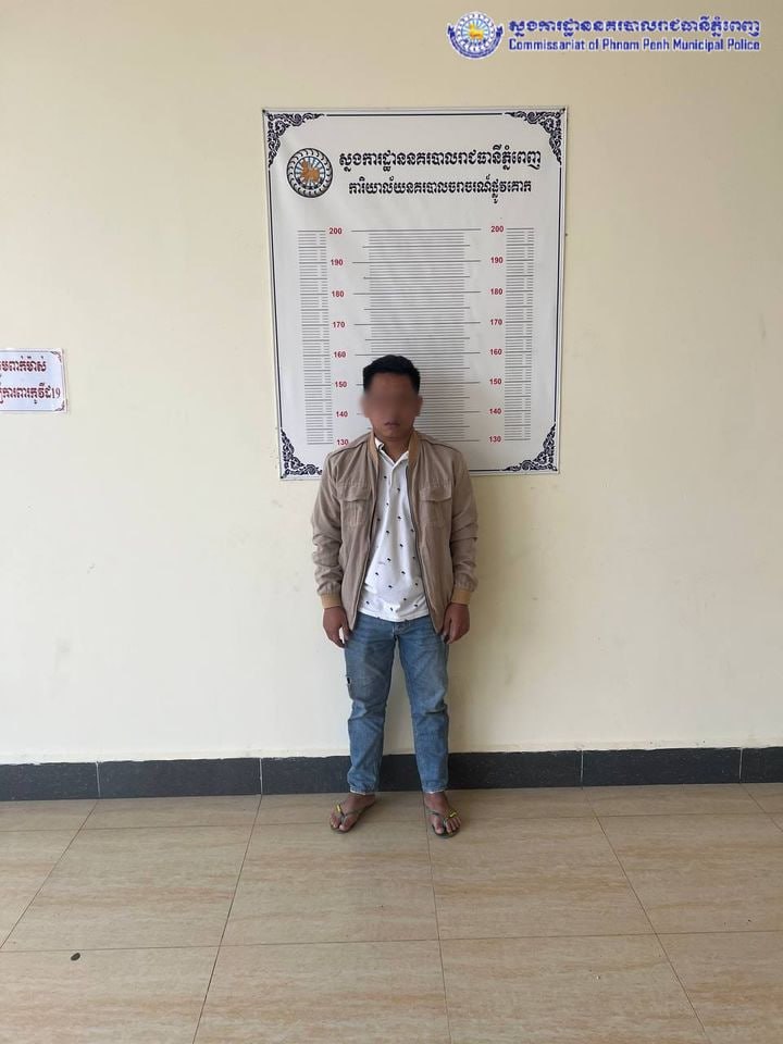 ជនសង្ស័យឈ្មោះ លី ថាដារ៉ាវិ ភេទប្រុស មុខរបរនៅផ្ទះ បច្ចុប្បន្នរស់នៅភូមិក្តីតាកុយ សង្កាត់វាលស្បូវ ខណ្ឌច្បារអំពៅ។