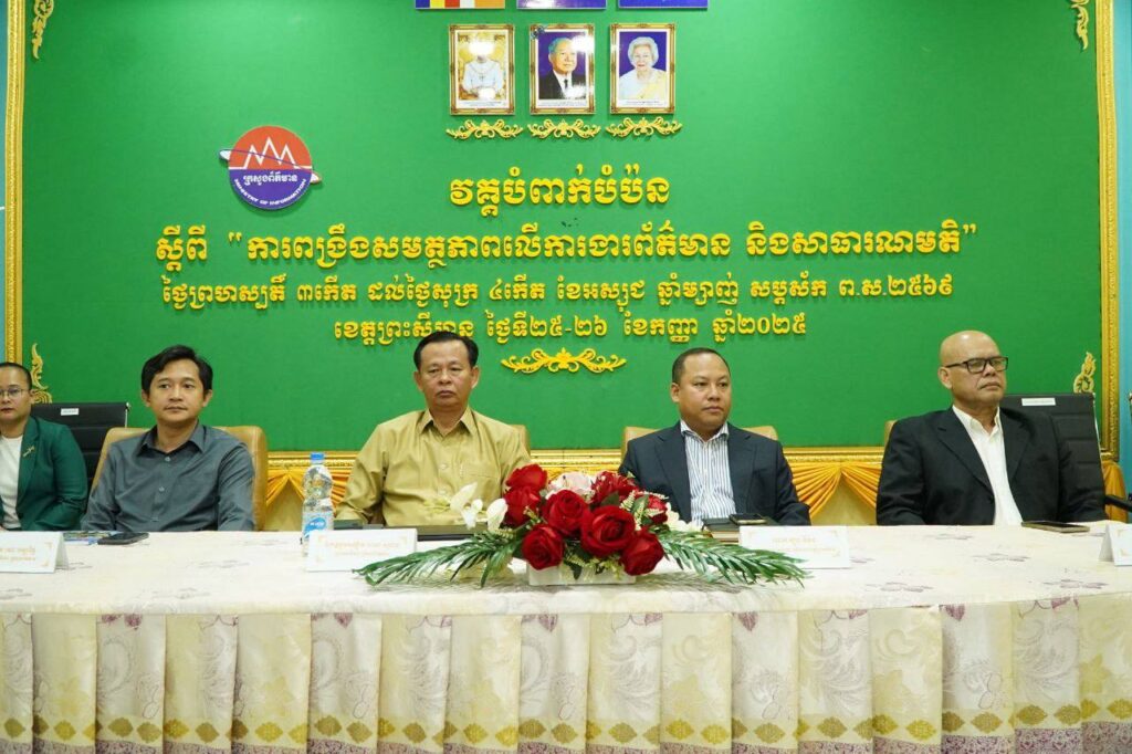 ព្រះសីហនុ៖ ក្រសួងព័ត៌មាន សហការជាមួយមន្ទីរព័ត៌មានខេត្តព្រះសីហនុនាព្រឹកថ្ងៃទី២៥ ខែកញ្ញា ឆ្នាំ២០២៥ នៅសាលប្រជុំសាលាក្រុងព្រះសីហនុ បានបើកវគ្គបំពាក់បំប៉នស្តីពីការពង្រឹងសមត្ថភាព លើការងារព័ត៌មាន និងសាធារណមតិដល់មន្ត្រីជំនាញមកពីមន្ទីរព័ត៌មានខេត្តព្រះសីហនុ កែប កោះកុង កំពត តាកែវ និងមន្ទីរព័ត៌មានខេត្តកំពង់ស្ពឺសរុបប្រមាណ៩០នាក់ ។