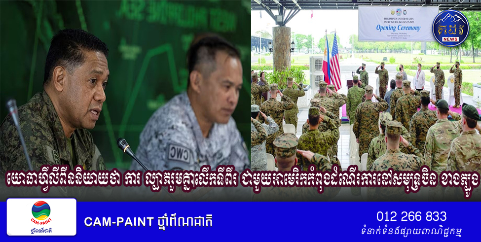 យោធាហ្វីលីពីនបាននិយាយ នៅក្នុងសេចក្តីថ្លែងការណ៍មួយថា ហ្វីលីពីន និងអាមេរិក បានចាប់ផ្ដើមការល្បាតរួមគ្នា រយៈពេល 2ថ្ងៃ នៅសមុទ្រចិនខាងត្បូងកាលពីថ្ងៃទី3ខែមករា ដែលជាទង្វើទំនងធ្វើឱ្យចិនខឹង។ ការចូលរួមផ្នែកសន្តិសុខ រវាងសម្ព័ន្ធមិត្តសន្ធិសញ្ញបានកើនឡើង កាលពីឆ្នាំមុន ចំពេលមានភាពតានតឹងកើនឡើង នៅសមុទ្រចិនខាងត្បូង ដែលហ្វីលីពីន និងចិនបានស្តីបន្ទោសគ្នាទៅវិញទៅមកលើជម្លោះ។ ហ្វីលីពីន និង អាមេរិកបានបើកការល្បាតរួមគ្នាជាលើក ដំបូងនៅខែវិច្ឆិកា ដោយធ្វើសមយុទ្ធយោធារ យៈពេល ៣ថ្ងៃ នៅដែនទឹកក្បែរកោះតៃវ៉ាន់និងសមុទ្រហ្វីលីពីនខាងលិច ដែលជាពាក្យ របស់ទីក្រុងម៉ានីល សម្រាប់ដែនទឹកសមុទ្រចិនខាងត្បូងនៅតំបន់សេដ្ឋកិច្ចផ្ដាច់មុខរបស់ខ្លួន។