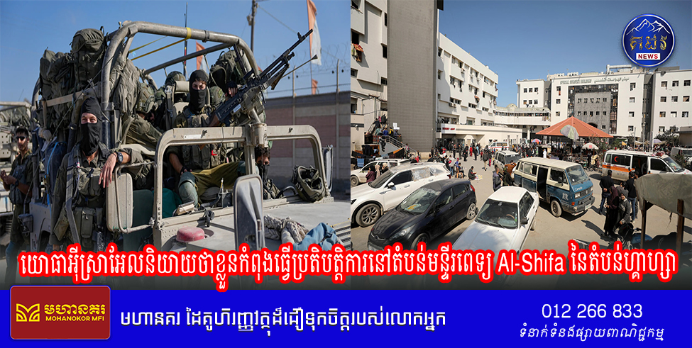 កងកម្លាំងការពារអ៊ីស្រាអែលបាននិយាយកាលពីព្រឹកថ្ងៃចន្ទថា ខ្លួនកំពុងធ្វើប្រតិបត្តិការយោធានៅក្នុងតំបន់នៃមន្ទីរពេទ្យ Al Shifa នៃទីក្រុង Gaza ។ IDF បាននិយាយនៅក្នុងសេចក្តីថ្លែងការណ៍មួយថា ប្រតិបត្តិការនេះគឺផ្អែកលើការស៊ើបការណ៍សម្ងាត់ដែលមន្ទីរពេទ្យកំពុងត្រូវបានប្រើប្រាស់ដោយ “ភេរវករជាន់ខ្ពស់ហាម៉ាសដើម្បីធ្វើ និងផ្សព្វផ្សាយសកម្មភាពភេរវករ”។CNN មិនអាចផ្ទៀងផ្ទាត់ការអះអាងនេះដោយឯករាជ្យបានទេ។