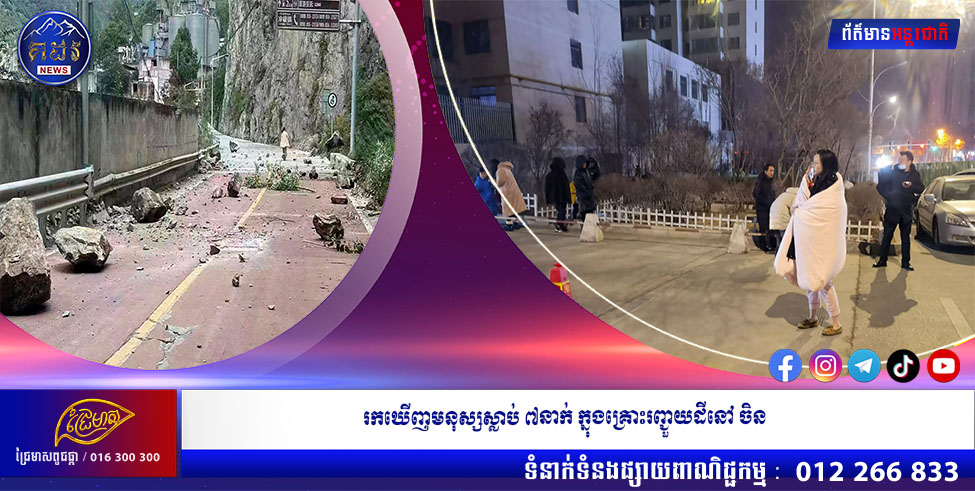 រកឃើញមនុស្សស្លាប់ ៧នាក់ក្នុងគ្រោះរញ្ជួយដីនៅចិន